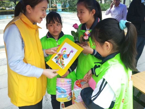 上午8點(diǎn)多,黃圃鎮(zhèn)學(xué)雷鋒志愿服務(wù)集市在黃圃鎮(zhèn)會(huì)展中心廣場(chǎng)拉開序幕,集市上人潮涌動(dòng),熱鬧非凡。經(jīng)過(guò)華洋學(xué)校親子義工服務(wù)隊(duì)精心的布置,義賣小攤已經(jīng)上市。參與義賣的物品有學(xué)生精心準(zhǔn)備的繪畫、剪紙、手工編織,玩具等特色作品,還有家長(zhǎng)們提供的美食,服裝等?;顒?dòng)中,為了籌集到更多的善款,華洋學(xué)校親子義工隊(duì)兵分三路,一路留守?cái)偽唬M(jìn)行物品義賣;另一路則在集市的四周手捧著捐款箱籌集善款,不少愛心人士被熱鬧的集市氣氛感染,拿出自己的善款投入到華洋學(xué)校的捐款箱中;還有一路則熱情似火地走出攤位推銷著愛心商品,向周圍的顧客推銷義賣的商品,孩子們?cè)谌巳褐写┧螅鬟B在各式各樣的商鋪間,用他們的實(shí)際行動(dòng)踐行著雷鋒精神,弘揚(yáng)著善文化。雷鋒精神記我心,我做公益來(lái)踐行!活動(dòng)結(jié)束后,華洋學(xué)校志愿服務(wù)隊(duì)把本次籌得的善款交到了鎮(zhèn)團(tuán)委,獻(xiàn)出一片愛心。