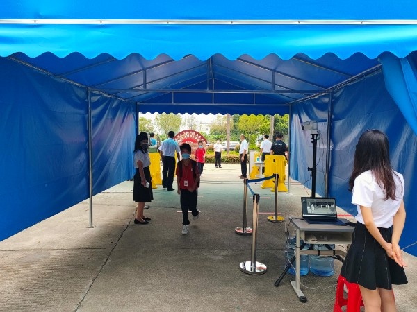 早上7點20分,升輝小學(xué)老師、同學(xué)們早早來到校園等待見面。為了確保安全,升輝小學(xué)4--6年級的學(xué)生錯峰回到了久別的校園。雖然早上下著毛毛細雨,但是絲毫沒有影響到同學(xué)們快樂復(fù)學(xué)的心情。在校門口,升輝小學(xué)的全體行政、班主任、老師及校醫(yī)早早到崗開展交通指引、測溫,指導(dǎo)學(xué)生保持1米安全距離入校。同學(xué)們分別通過手腕測溫儀、熱成像自動測溫通道文明有序地進入校門。各班級教室門口,都為同學(xué)們準(zhǔn)備了洗手液、測溫儀等防疫用品,同學(xué)們安靜進入班級課室并與同學(xué)保持安全距離。