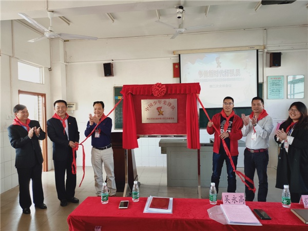 隨后,吳永高局長、薛棉副書記以及升輝小學(xué)少工委主任呂鑒添校長還有副主任們?cè)陉?duì)員們的倒數(shù)和歡呼聲中共同為升輝少工委揭牌。學(xué)校少工委的成立標(biāo)志著學(xué)校少先隊(duì)工作走上一個(gè)新的臺(tái)階。