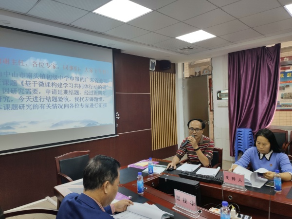 2019年12月16日下午,南頭鎮(zhèn)初級(jí)中學(xué)舉行2015年度省級(jí)立項(xiàng)課題《基于微課構(gòu)建學(xué)習(xí)共同體的行動(dòng)研究》結(jié)題報(bào)告會(huì)。蒞臨結(jié)題報(bào)告會(huì)的專家有:廣東省教研院謝紹熺主任、廣東省教研院余奇博士、東升高級(jí)中學(xué)信息技術(shù)教研組組長(zhǎng)常正平老師、南頭鎮(zhèn)教指中心謝桂華主任,李劍輝老師,盧新泉校長(zhǎng),以及課題組全體成員參加了此次結(jié)題會(huì)。