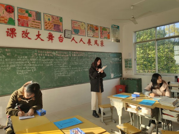 然后,我們自由進(jìn)入教室進(jìn)行聽(tīng)課。課堂上,許市中學(xué)采用的是“五環(huán)漸進(jìn)式”的課堂模式,“五環(huán)”即是:(一)上板反饋、(二)討論交流、(三)展示提升、(四)梳理總結(jié)、(五)達(dá)標(biāo)檢測(cè)。“五環(huán)”緊緊相扣,讓課堂的學(xué)習(xí)氣氛變得十分濃厚,讓學(xué)生的能力得到了很多的提升,最重要的是充分發(fā)揮了學(xué)生的學(xué)習(xí)自主性,使學(xué)生真正地成為學(xué)習(xí)的主人。除此之外,老師們感慨許市中學(xué)的學(xué)生的自信陽(yáng)光、自理自立、能言善辯、善于協(xié)作、敢于質(zhì)疑、強(qiáng)于管理的表現(xiàn)。雖然許市中學(xué)地處農(nóng)村,學(xué)生來(lái)自鄉(xiāng)野,但是,看到他們?cè)谡n堂在集會(huì)上的大膽自信的表現(xiàn),很難將他們與鄉(xiāng)野聯(lián)想起來(lái)。