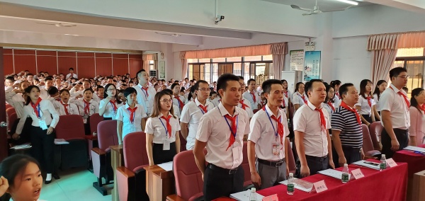 為貫徹落實黨的十九大精神,進一步加強少先隊基層組織建設(shè)和基層工作,進一步發(fā)揮少先隊組織的先進作用,更好地團結(jié)、教育、引導廣大少先隊員,培養(yǎng)少先隊員愛黨、愛國的感情。11月8日,南頭華暉學校以“爭做時代好少年”為主題,在學校六樓會議室隆重召開了中國少年先鋒隊中山市南頭華暉學校2019年代表大會及中國少年先鋒隊中山市南頭華暉學校工作委員會成立儀式。出席本次大會的有南頭鎮(zhèn)團委書記、少工委主任梁清堯,南頭鎮(zhèn)教育線黨委副書記、鎮(zhèn)教育事務指導中心主任、鎮(zhèn)少工委副主任謝桂華,南頭鎮(zhèn)教育事務指導中心德育專干、鎮(zhèn)少工委總輔導員郭淑娟,南頭鎮(zhèn)將軍小學大隊輔導員江婷婷,除此,南頭華暉學校校長李明勇,黨支部書記、常務副校長鄭堪文、德育處安全主任黃晚強,少先隊大隊輔導員劉影芳以及各中隊輔導員和各中隊少先隊員代表共計205名代表參加了本次會議。