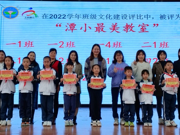 學(xué)校德育部門從班級(jí)整體布局、小組文化建設(shè)、班級(jí)組織建設(shè)、黑板報(bào)、班級(jí)特色文化、班級(jí)主題專欄以及環(huán)境衛(wèi)生等方面對進(jìn)行了綜合評(píng)價(jià),評(píng)選出潭小“最美教室”。4月3日的升旗儀式上,德育處副主任何煥貞宣布了獲得“最美教室”稱號(hào)的班級(jí),隨后鐘雪城校長為獲獎(jiǎng)班級(jí)的班主任和學(xué)生代表頒發(fā)“最美教室”的獎(jiǎng)狀。