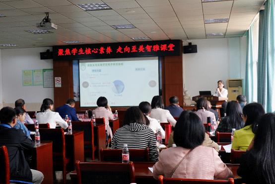 黎愛葉主任以《單元整合教學(xué)新視角,學(xué)科核心素養(yǎng)新探索》為題淺談了學(xué)校英語科組建設(shè)的思路和做法