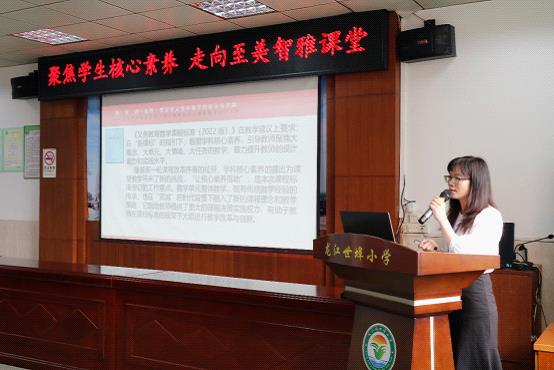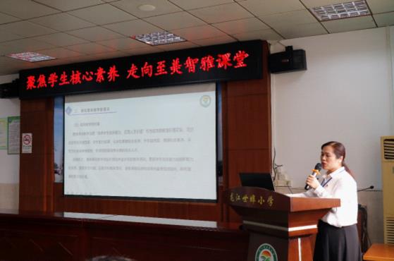 春風(fēng)化雨育桃李,紫氣東來萬象新。為做好佛山市全口徑全方位融入式幫扶云浮市基礎(chǔ)教育高質(zhì)量發(fā)展工作,探索新課程背景下“學(xué)-教-評(píng)”一體化課堂教學(xué)程式的有效策略和可行路徑,3月10日上午,在新興縣教育局教學(xué)研究室的組織下,在河頭鎮(zhèn)教育辦主任、中心小學(xué)校長(zhǎng)練培友的帶領(lǐng)下,河頭鎮(zhèn)各小學(xué)的骨干老師26人、龍江鎮(zhèn)“3+N”區(qū)域聯(lián)合教研第二共同體成員校教師代表20多人齊聚世埠小學(xué)開展了“聚焦學(xué)生核心素養(yǎng) 走向至美智雅課堂”區(qū)域教研活動(dòng)。龍江鎮(zhèn)教育教學(xué)研究室黃明遠(yuǎn)副主任、義務(wù)教育教研與監(jiān)測(cè)組田乃林組長(zhǎng)、羅輝英副組長(zhǎng)和英語教研員梁寶欣參加了本次活動(dòng)。
