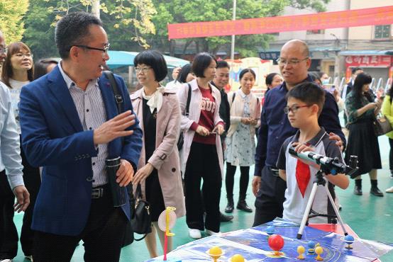 在李少強(qiáng)校長(zhǎng)的帶領(lǐng)下,領(lǐng)導(dǎo)和新興的同行們察看了校園環(huán)境文化,觀看了學(xué)校的創(chuàng)智·科漫節(jié)的成果展示,饒有興致地聽了學(xué)生關(guān)于小小科學(xué)家、紙橋承重、蘿卜搭高塔、變廢為寶、3D打印等現(xiàn)場(chǎng)解說,被孩子們的觀察力、學(xué)習(xí)力、思維力、動(dòng)手能力和表達(dá)能力深深吸引著。