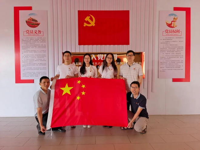 和秋帶領(lǐng)黨員與國(guó)旗合影