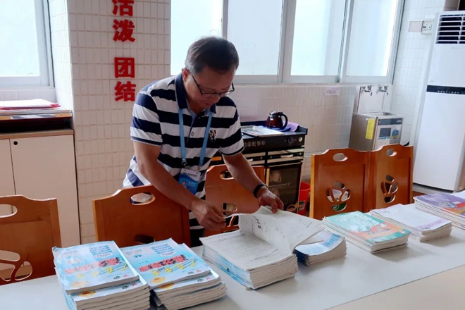 郭懷財(cái)檢查學(xué)生作業(yè)情況