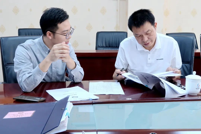 汪志偉(右)檢查檔案資料