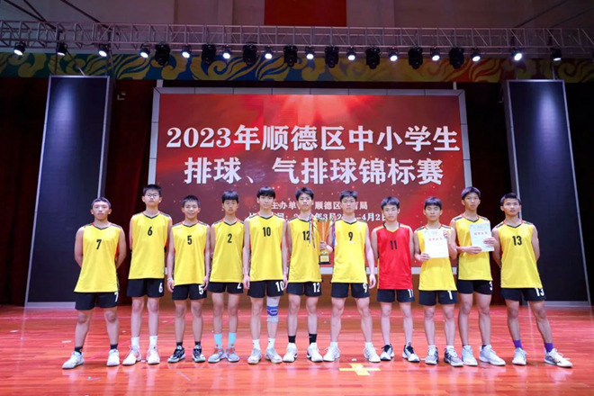 2023年順德區(qū)中小學(xué)生排球、氣排球錦標(biāo)賽,乙組、丙組比賽在江義中學(xué)舉行。江義中學(xué)共派出四支隊(duì)伍參加本次比賽,男子一隊(duì)、二隊(duì)分別獲得第一名和第三名,女隊(duì)獲得第八名。