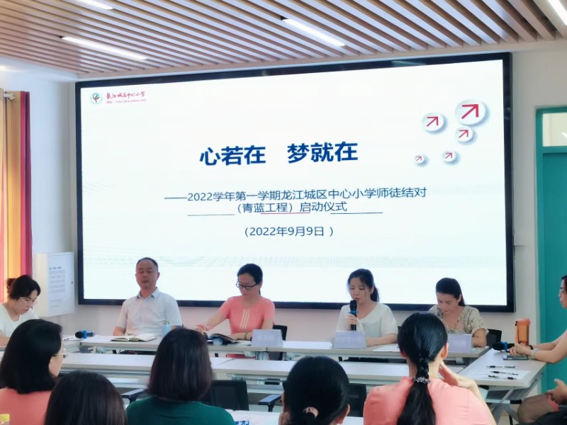 “青藍結(jié)對清秋始,惟愿枝間子初成”,為了更好的發(fā)揮骨干教師教育教學(xué)的優(yōu)勢及示范、引領(lǐng)作用,通過傳、幫、帶,促進新教師盡快適應(yīng)教育崗位的要求,實現(xiàn)師德、教學(xué)、教育管理能力的同步提高,9月9日下午龍江城區(qū)中心小學(xué)在錦屏校區(qū)舉行了“青藍工程”師徒結(jié)對活動。
