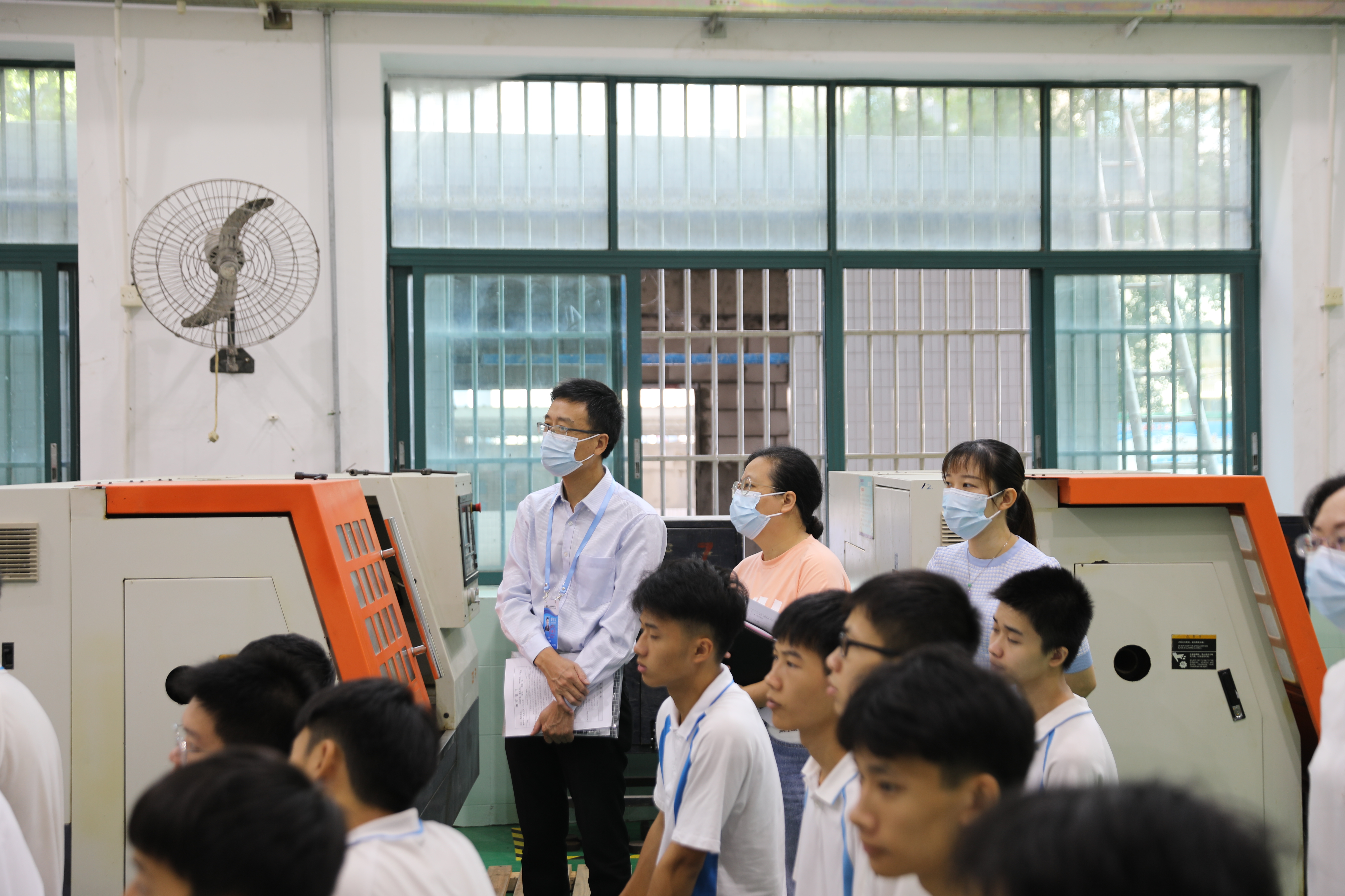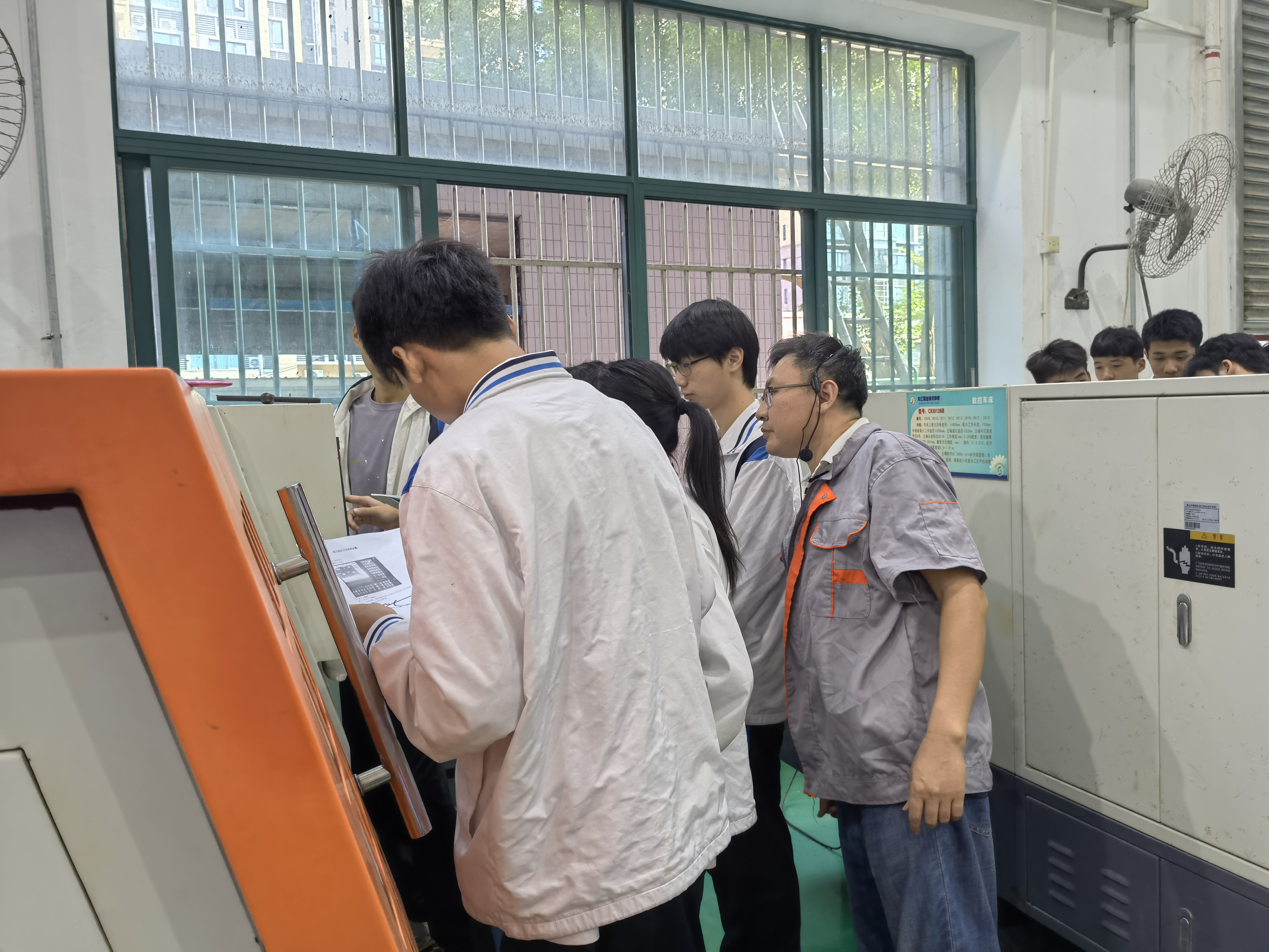 王老師指導學生操作數控車床
