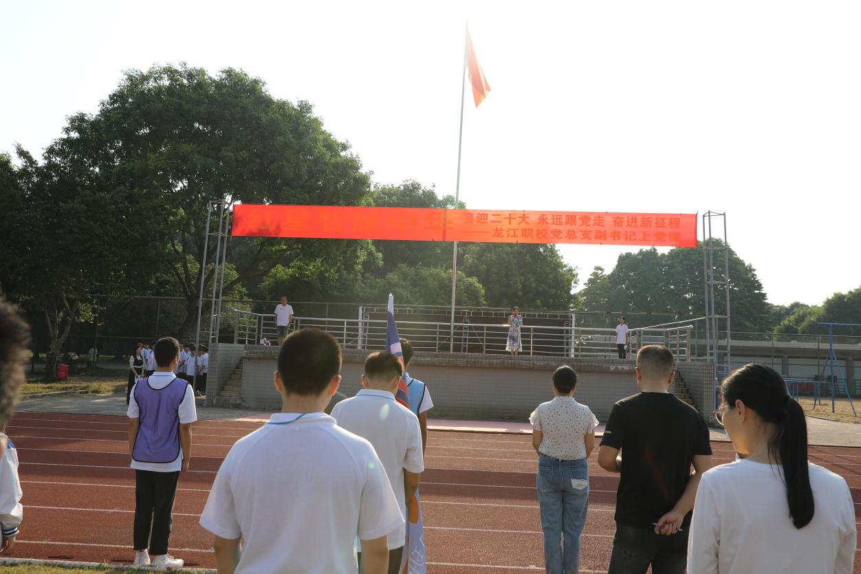 為深入學(xué)習(xí)貫徹落實(shí)黨的二十大精神,切實(shí)把思想和行動(dòng)統(tǒng)一到黨的二十大精神上來,培育龍江職校全校師生們愛黨愛國情懷,2022年10月24日,龍江職業(yè)技術(shù)學(xué)??傊Р拷M織開展全校師生共同學(xué)習(xí)二十大報(bào)告精神,由謝志紅副書記上一節(jié)國旗下的黨課。在微熹晨光中,伴隨著激昂嘹亮的國歌聲,鮮紅的五星紅旗冉冉升起,謝副書記開始了以“紅星智耀中華”為主題的小而精的微黨課。