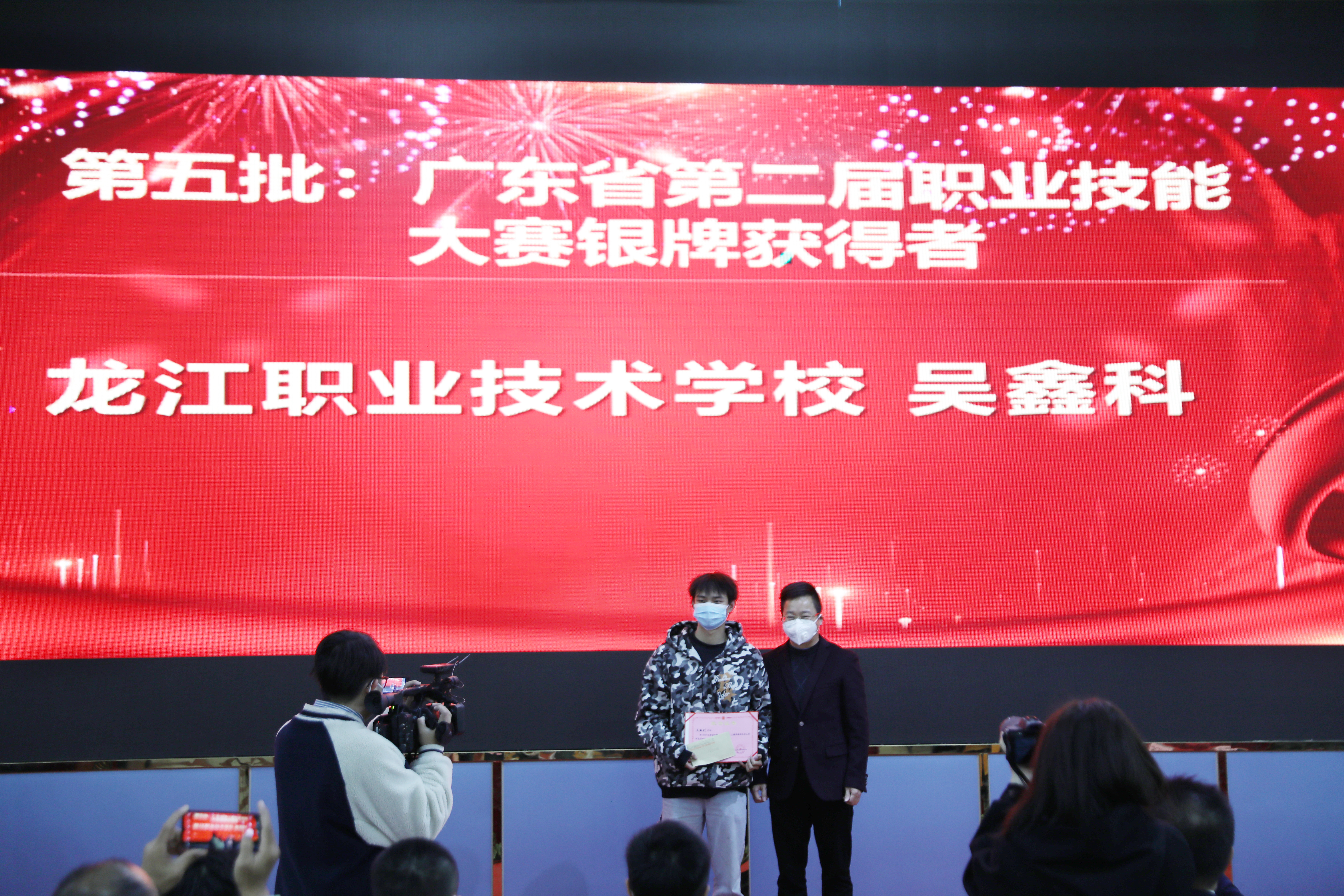 吳智力副理事長長為廣東省第二屆職業(yè)技能大賽銀牌獲得者吳鑫科頒獎(jiǎng)