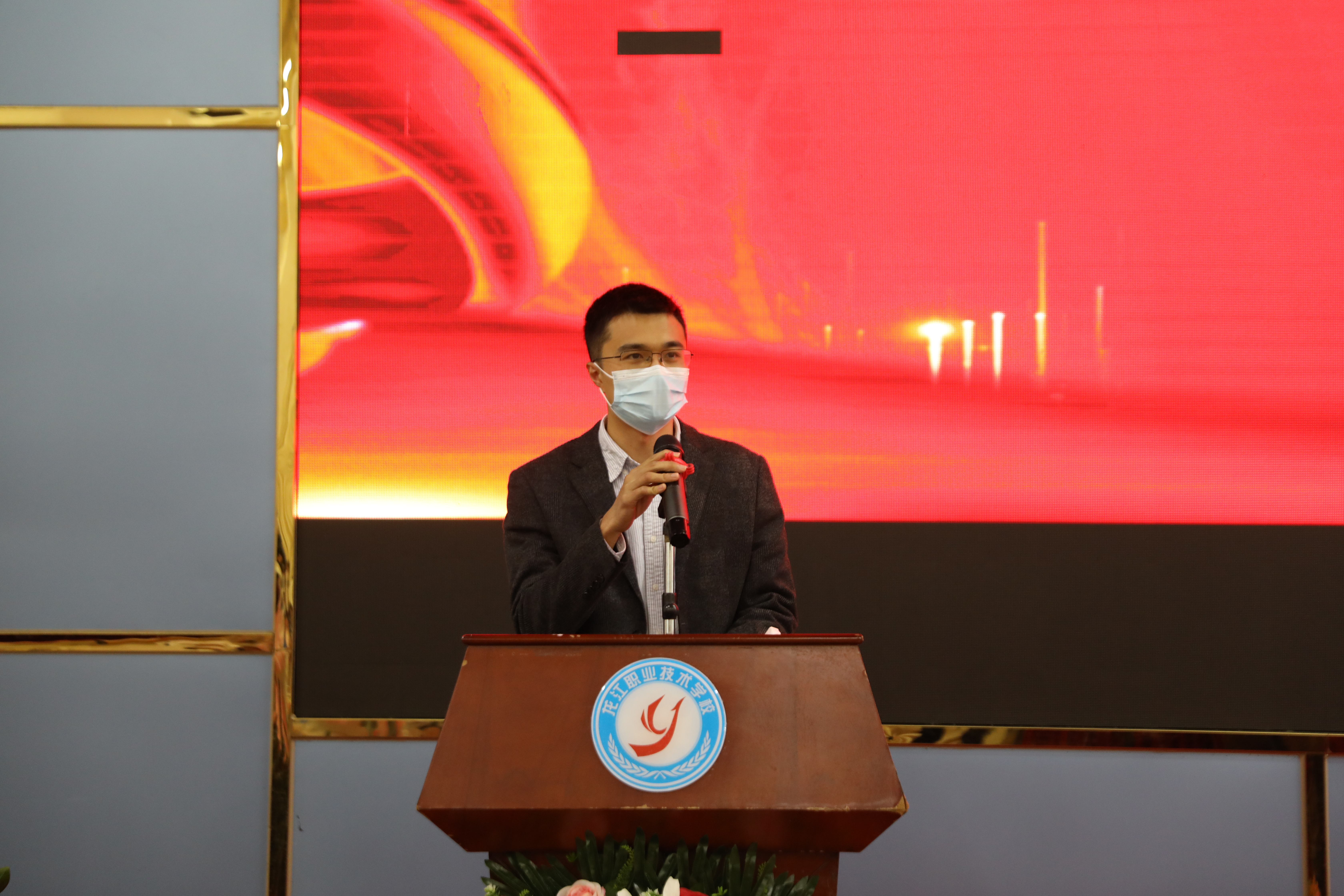 龍江職業(yè)技術(shù)學(xué)校黨總支書記、校長陳義明為龍江鎮(zhèn)最美廣東技工頒獎(jiǎng)