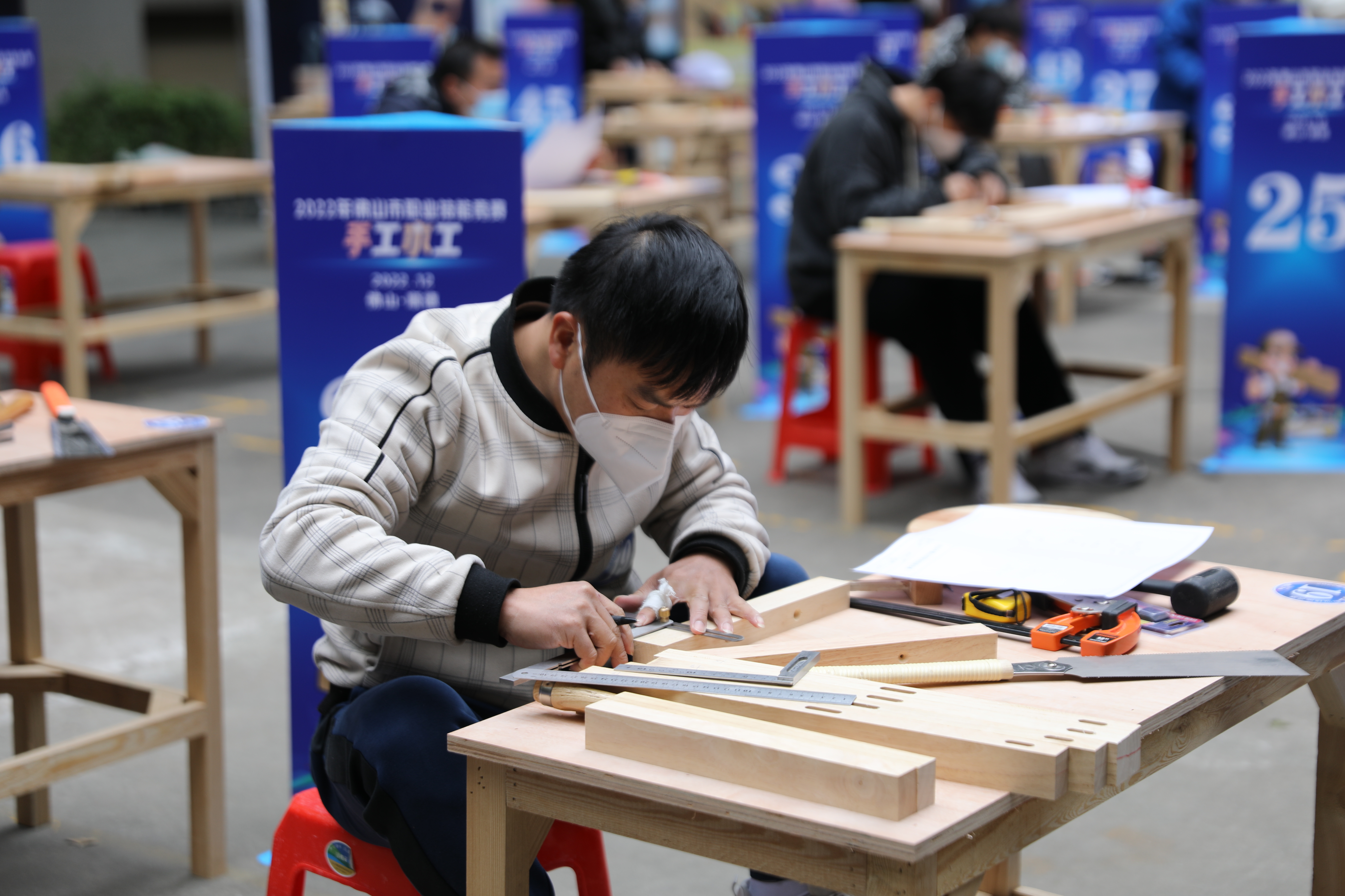 今年大賽初賽吸引了80名手工木工選手報(bào)名參加,通過筆試,其中的50名木工選手順利進(jìn)入今天的決賽。