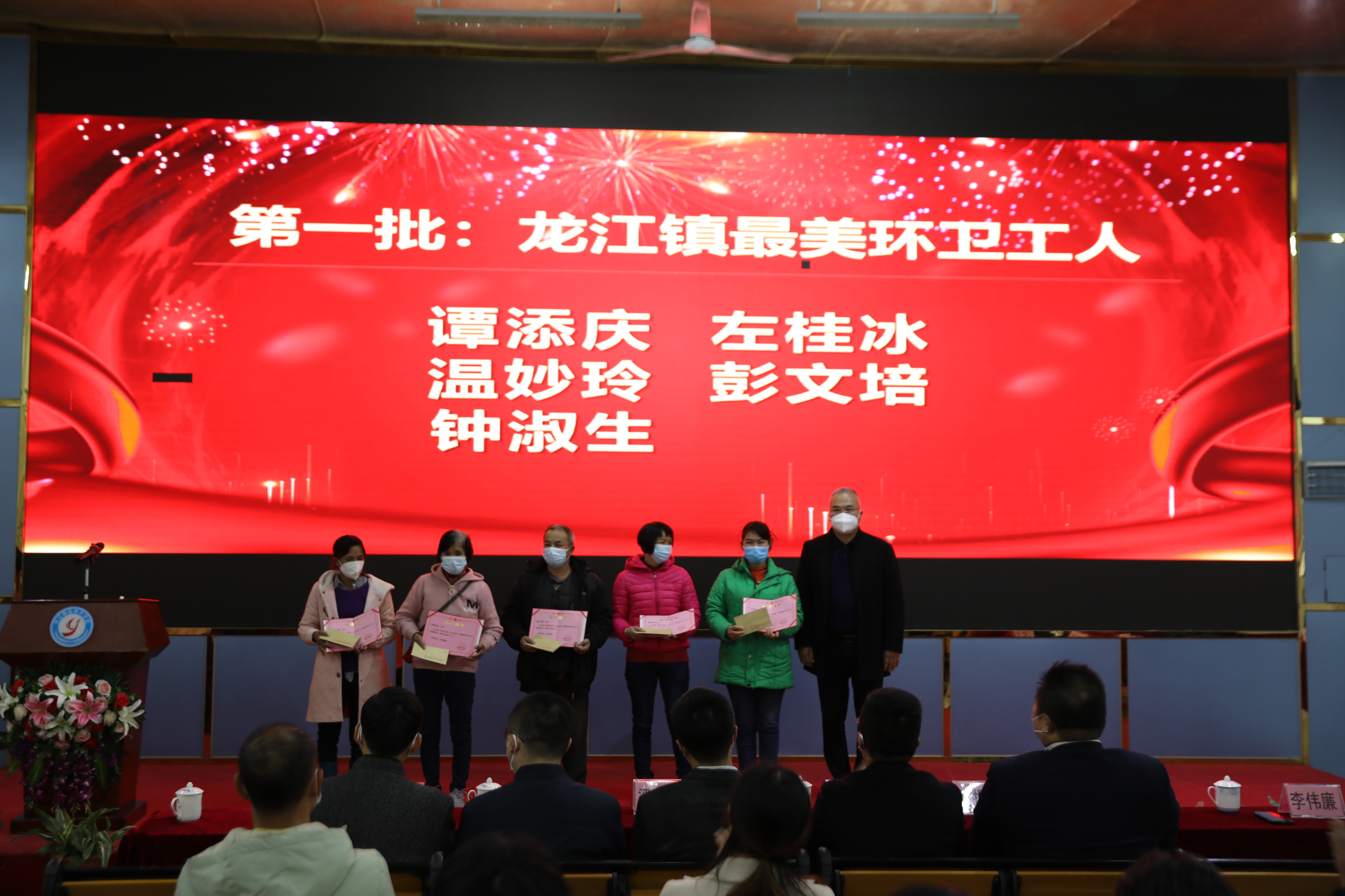 龍江鎮(zhèn)公共服務(wù)辦主任李偉廉為龍江鎮(zhèn)最美環(huán)衛(wèi)工人頒獎(jiǎng)