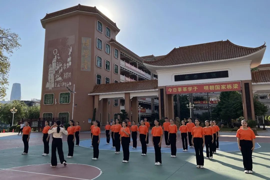 從接到比賽通知起,我校師生積極參與、認真準備,指導(dǎo)老師黃雪瓊每天和學生們泡在一起,從最簡單的手形手位開始,到組合,再到隊形走位,再練整齊度和扣動作,一絲不茍,披星戴月地排練。濕透衣裳,同學們都沒有放棄訓練,一舉手一投足,一顰一笑滲透粵韻風味。功夫不負有心人,師生付出的汗水和心血終于有回報。
