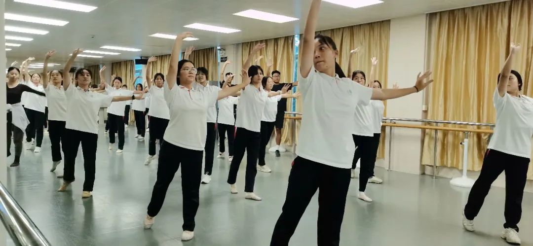 一開始有些擔心自己是否有這樣的能力完成比賽任務(wù),但在訓練的過程中,大家互相幫助,一起討論動作,一起玩耍。大家上一秒還在嘻嘻哈哈,下一秒就進入狀態(tài)。每當老師講評一些動作時,每個人都在認真聽講,舞蹈室靜得只剩老師的聲音,因為大家都知道時間的緊迫。訓練的同時,我們學業(yè)也沒有落下。我們在訓練完后會聚在一起寫作業(yè),遇到不懂的知識點,會互相講解。老師也會利用空余時間幫我們補課。讓我們在訓練的同時不會擔心學習。訓練時間雖短,但我們付出的時間與精力不少,同時收獲(友誼、舞蹈知識等)也不少,感謝老師對我們的悉心輔導(dǎo)!——何堰筠 同學