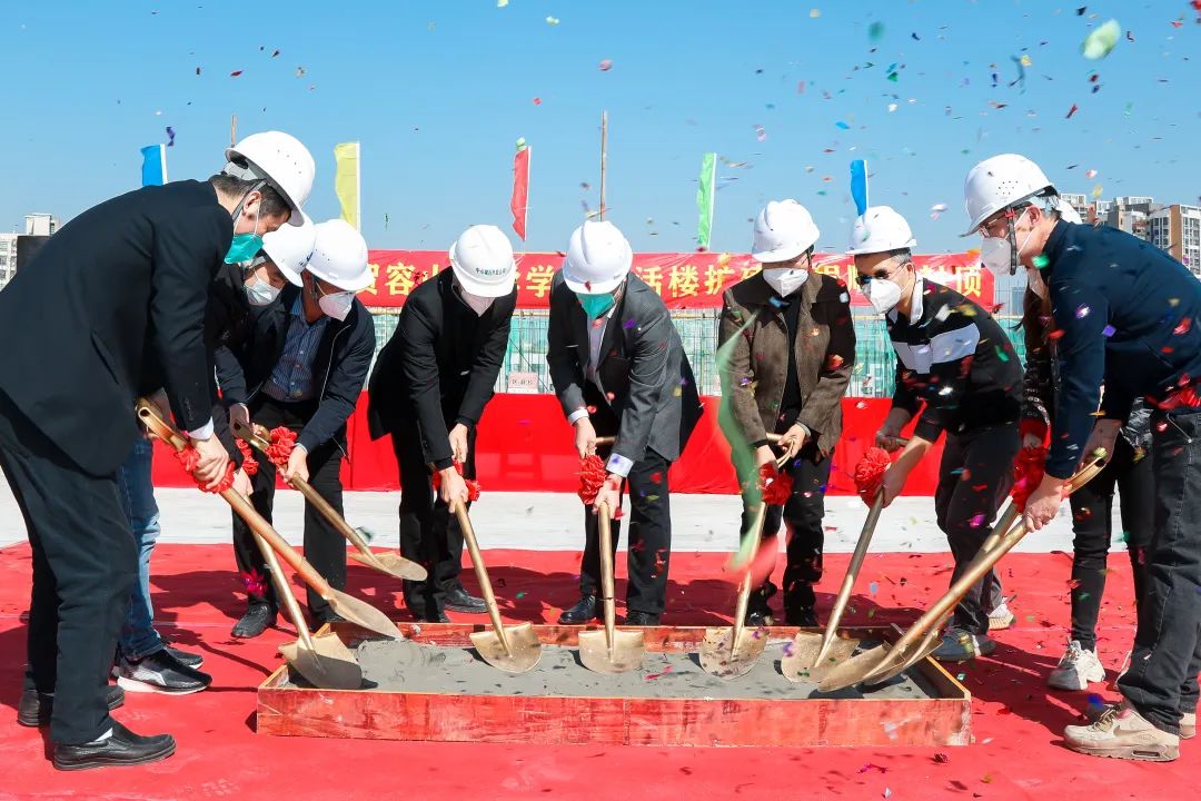 今天,順德區(qū)教育局黨組成員、順德區(qū)民辦教育行業(yè)黨委專職副書記張志永先生;廣東順德中心城區(qū)投資開發(fā)有限公司副總經(jīng)理范廣宇先生;佛山市順德建筑設(shè)計院股份有限公司副院長樊海倫先生、設(shè)計室周佩詩女士;河北建設(shè)工程有限公司項目部負責人伍尚堅先生、項目經(jīng)理任賀軍先生;容山中學校長區(qū)淑玲女士、副校長丘宇軒先生等嘉賓出席了儀式,共同見證了容山中學新生活樓封頂?shù)臍v史時刻。 為滿足學生的住宿需求,2021年7月,容山中學新生活樓擴建工程正式奠基啟動,歷時一年半,今天順利封頂。在明年2023年,該工程完工后可以提供近1000個宿位,將徹底改善容山中學學生的住宿條件。 張志永副書記發(fā)言 順德區(qū)教育局黨組成員、順德區(qū)民辦教育行業(yè)黨委專職副書記張志永先生致辭提出:容山中學是順德區(qū)的一間高品質(zhì)高中,近幾年持續(xù)保持高位發(fā)展,學校無論在高考成績還是在師生的多元發(fā)展等方面都取得了優(yōu)異的成績,容山中學新生活樓建設(shè)項目是一項重大的民生工程,也是區(qū)教育局重點建設(shè)項目之一。 容山中學校長區(qū)淑玲女士表示:新生活樓建設(shè)工程能夠順利開展,離不開各級黨委政府和教育部門的關(guān)心和支持,離不開奮斗在一線的全體參建人員的日夜辛勤付出。容山中學將充分利用辦學條件改善的契機,繼續(xù)提高育人能力,繼續(xù)提高辦學效益,讓順德的孩子無需走遠,就能享受高質(zhì)量的高中教育。也為明年容山中學215周年校慶獻禮! 現(xiàn)場的領(lǐng)導及嘉賓共同為容山中學學生生活樓擴建工程封頂進行澆筑 禮成!為容山中學學生新生活樓點贊!