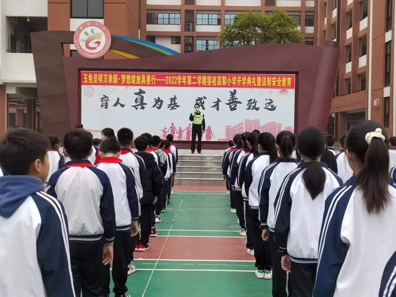 2023年2月6日上午,全校師生參加了簡(jiǎn)單而隆重的升旗儀式,學(xué)校邀請(qǐng)分管法制副校長霍榮鏗警官,對(duì)全校師生進(jìn)行安全主題教育?;艟倬托@安全、禁毒安全、交通安全、防溺水、消防安全等內(nèi)容,對(duì)全體師生開展一次全面的安全教育。提醒學(xué)生遵紀(jì)守法、放學(xué)注意交通安全、未滿12周歲不能騎自行車、不去游戲機(jī)室和娛樂場(chǎng)所等地方、對(duì)毒品說no、不玩火等。