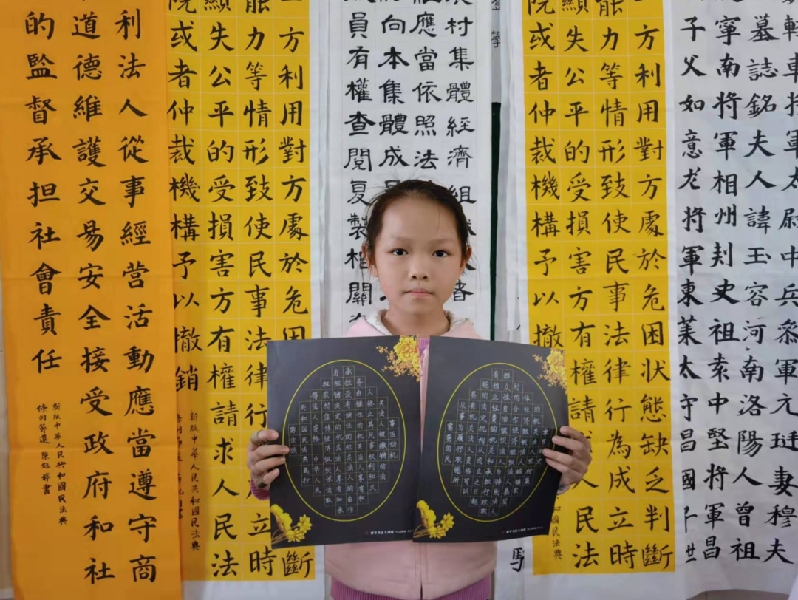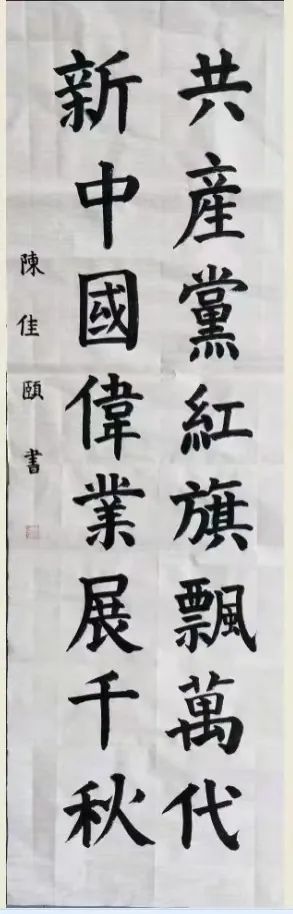陳佳頤同學(xué)是紅旗小學(xué)四年(4)班的學(xué)生,她學(xué)習(xí)成績優(yōu)秀,可絕不是“書呆子”。她是一位活潑可愛的小女孩,也是一位愛熱鬧、喜歡玩耍的小女生。但是,一說到書法練習(xí),年紀(jì)小小的她可以馬上收起那顆愛玩的心,認(rèn)真投入練習(xí)。她勤學(xué)刻苦,挑戰(zhàn)自我,在書法學(xué)練中取得了喜人的成果。