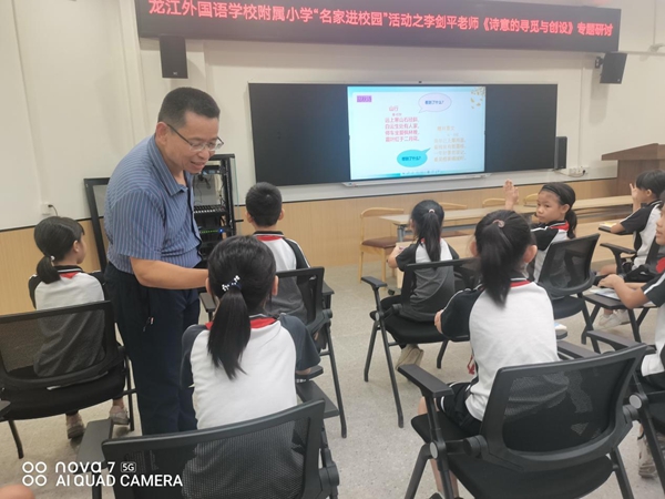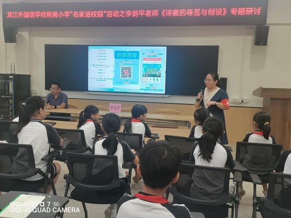 秋風(fēng)送爽,丹桂飄香。為弘揚(yáng)優(yōu)秀傳統(tǒng)文化,推進(jìn)兒童詩歌教學(xué),提高學(xué)生的語文素養(yǎng),讓師生得到全面發(fā)展。9月22日下午,龍江外國語學(xué)校附屬小學(xué)舉行了《詩意的尋覓與創(chuàng)設(shè)》專題研討活動(dòng),學(xué)校特邀請(qǐng)到多年以來為詩教事業(yè)默默付出的著名佛山本土詩人——李劍平為我校師生做詩歌創(chuàng)作培訓(xùn)。全體語文教師和三至六年級(jí)的詩歌愛好者踴躍參加了本次活動(dòng)。