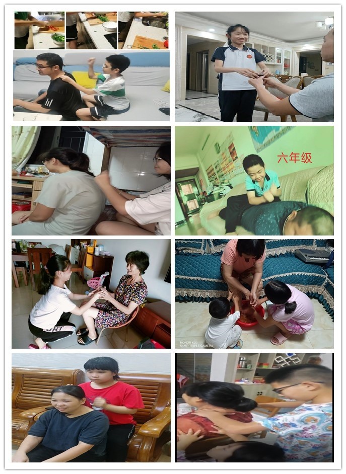 熱愛勞動是中華民族的傳統(tǒng)美德,為進一步強化勞動教育,提高學生勞動意識與素養(yǎng)。恰逢重陽節(jié)的到來,為了樹立尊老、敬老、愛老、助老的風氣,在國慶假期中,每個年級的孩子們都為家人做了力所能及的勞動家務(wù)。