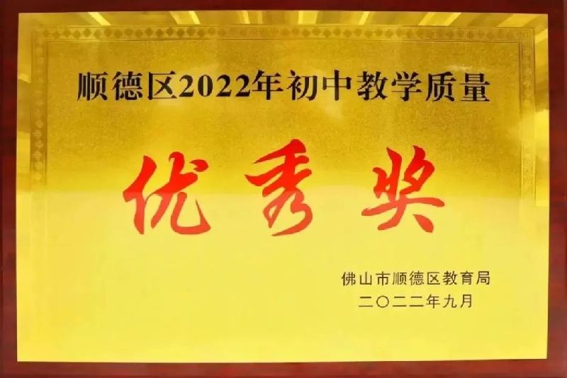 順德區(qū)初中教學(xué)質(zhì)量優(yōu)秀獎(jiǎng)