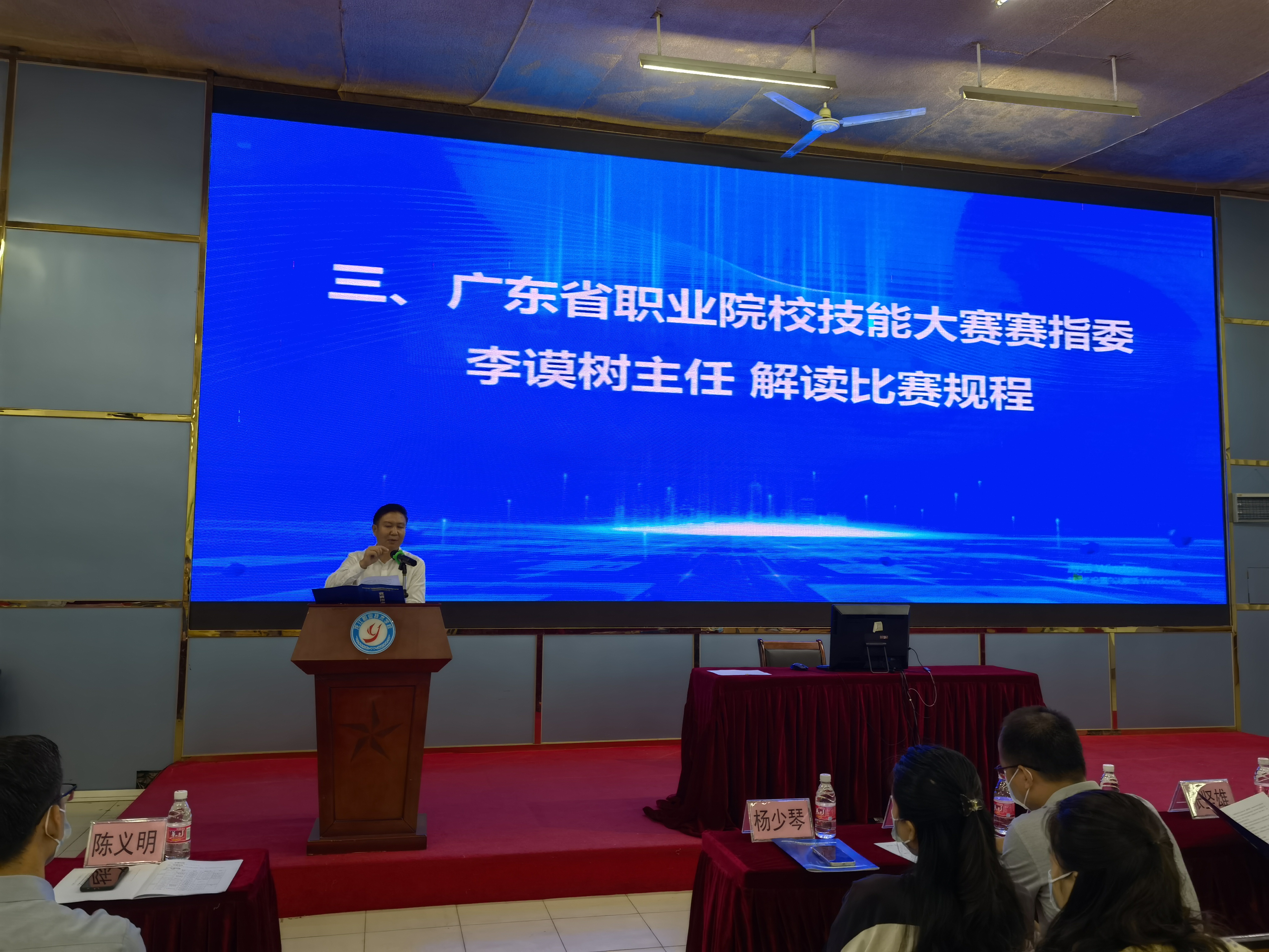 2022年8月26日下午召開了賽前說明會。廣東省教育廳職業(yè)教育與終身教育處副處長張堅雄、廣東省教育廳職業(yè)教育與終身教育處調(diào)研員鄭佳、省賽指委主任李謨樹、省賽指委秘書長廖中文、廣東技術(shù)師范大學(xué)網(wǎng)絡(luò)信息中心副主任陳志華、佛山市教育局教研室副主任王懷文、佛山市教育局教研員何愛華、佛山市順德區(qū)教育局高教職教科科長楊少琴、佛山市順德區(qū)龍江職業(yè)技術(shù)學(xué)校校長陳義明、佛山市順德區(qū)龍江職業(yè)技術(shù)學(xué)校副校長楊慧、佛山市順德區(qū)龍江職業(yè)技術(shù)學(xué)校教務(wù)處主任邱旭波,以及參加此次現(xiàn)場決賽的教學(xué)團(tuán)隊(duì)領(lǐng)隊(duì)和教師代表,出席了賽前說明會。