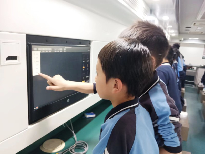 龍實(shí)學(xué)子在科學(xué)老師們的帶領(lǐng)下,井然有序地來到了“探索號”前,他們充滿好奇,紛紛想趕緊乘上“探索號”,一探究竟!一進(jìn)入“探索號”,映入眼簾的是各式各樣的先進(jìn)設(shè)備和實(shí)驗(yàn)探究儀器,同學(xué)們對電子顯微鏡、電磁感應(yīng)、小燈泡的串聯(lián)與并聯(lián)電路、可樂發(fā)電、制造彩虹等一系列的數(shù)字化實(shí)驗(yàn)都非常感興趣,加上車內(nèi)專業(yè)老師的生動講解,充分激發(fā)起龍實(shí)學(xué)子對科學(xué)探索的好奇心。