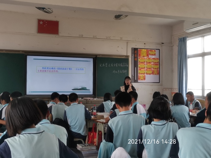 初三級(jí)組的五位語(yǔ)文準(zhǔn)備了五堂不同的課型,讓專家和領(lǐng)導(dǎo)能更全面深入地掌握整個(gè)備課組的教學(xué)情況。朱進(jìn)紅老師執(zhí)教的是文言文《鄒忌諷齊王納諫》,鄭超明老師展示的是作文評(píng)講課《擦亮半命題作文的靈魂之窗》,覃雙玲老師講授的是《議論文閱讀復(fù)習(xí)指導(dǎo)》,廖麗老師指導(dǎo)學(xué)生開展《文學(xué)類文本中考專題復(fù)習(xí)之對(duì)比手法分析》,卓翠繞老師重點(diǎn)講解《小說(shuō)人物形象分析專題》。五位老師授課形式各異,教學(xué)風(fēng)格不同,力求在多方面前呈現(xiàn)出該校語(yǔ)文教學(xué)的真實(shí)常態(tài)。