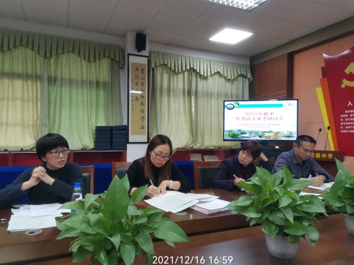 課堂觀摩結(jié)束后,學(xué)校組織了中考備課研討活動(dòng)。柏主任分別對(duì)五位老師的課堂進(jìn)行了詳細(xì)的剖析,既指出存在問(wèn)題,也給予中肯的建議,并解答了老師們?cè)趶?fù)習(xí)備考中存在的疑難與困惑。最后,柏主任為語(yǔ)文科組提出了整體改進(jìn)的意見:語(yǔ)文老師要轉(zhuǎn)換教學(xué)理念,課堂應(yīng)該放手學(xué)生們?nèi)ヌ骄?、思考,讓他們?cè)谒季S碰撞的火花中產(chǎn)生有益的認(rèn)知,切實(shí)提高學(xué)生的語(yǔ)文核心素養(yǎng),從而收到更好的教學(xué)效果。吳勇明校長(zhǎng)、黃仁才副校長(zhǎng)、李莉主任都對(duì)語(yǔ)文科組寄語(yǔ)了新的希望,為老師們指明了努力方向。
