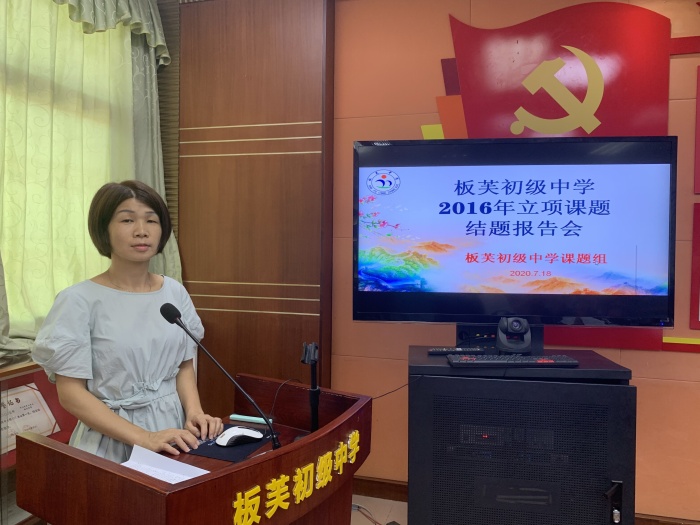 7月18日上午,板芙中學高學琳老師主持的2016年市級立項課題《師生合作開發(fā)初中英語活動課程的實踐研究》在該校會議室順利結(jié)題。出席本次結(jié)題報告會的專家有市教研室張?zhí)﹦偫蠋?、市教師發(fā)展中心李宏偉老師和板芙鎮(zhèn)教師發(fā)展中心胡新國老師。本次報告會由該校王冰副校長主持。