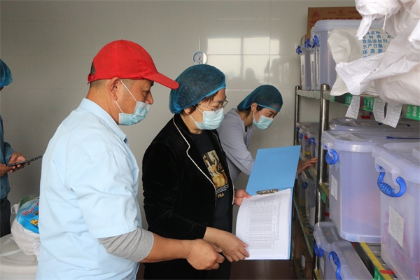 周麗端委員一行先來到學校食堂,對食堂的各個功能區(qū)域細致查看,并就食堂清潔消毒、食材采購、加工操作要求及流程,對食堂員工進行現(xiàn)場問詢。隨后,周麗端委員一行聽取了食堂負責人和學校關于食品安全工作的匯報,同時查閱了相關臺賬資料。