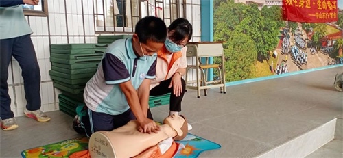 “隨著我們走出課堂、走出校園去開展形式多樣的活動,意外事故時有發(fā)生,如不及時救護,有時甚至會危及生命。如何減輕傷害、挽救生命,你準備好學習了嗎……”活動開始,中山市紅十字會志愿者運用生動具體的案例,以示范操作和現(xiàn)場演練等形式,就常見的溺水處理、氣道異物梗阻、創(chuàng)傷救護等急癥及自救、互救知識進行了講解。活動中,同學們始終情緒高漲,頻頻與講師互動,同時踴躍上臺參加現(xiàn)場情景模擬操作實踐。其中心肺復蘇的知識要點操作,更引起了同學們濃厚的興趣。培訓師們手把手教學,將規(guī)范操作的細節(jié)、要點進行全面指導。在培訓師的精心指導下,學生們規(guī)范操作實踐更扎實到位?;顒油瑫r,還進行了現(xiàn)場問卷調(diào)查,發(fā)放350本關(guān)于應(yīng)急救護的宣傳手冊。