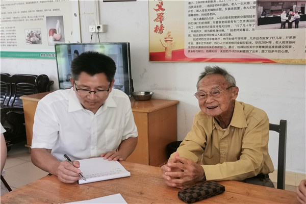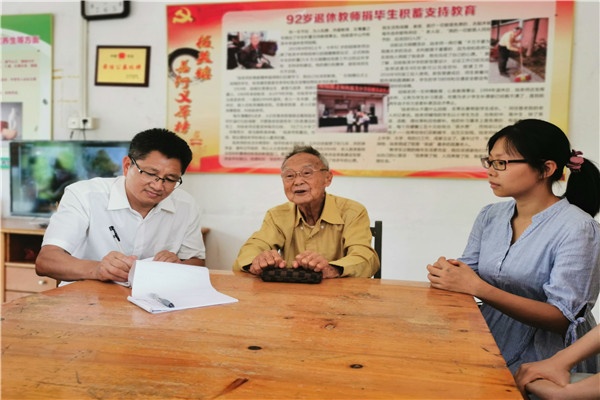陸樑老師是中山市板芙鎮(zhèn)板芙中學(xué)退休教師,一生未婚。1978年一次偶然的機會,陸樑被板芙中學(xué)的李華東校長發(fā)現(xiàn)。此后,他在板芙中學(xué)工作了16年,一直勤勤懇懇、任勞任怨,把學(xué)生當做自己的孩子,不求回報。據(jù)了解,陸樑老師因為是外聘老師,起初一個月才20多元工資,到上世紀九十年代也就200多元一個月。2015年4月9日上午,耄耋之年的陸樑老師毅然拿出省吃儉用積攢下來的畢生積蓄25.8萬元捐贈給板芙中學(xué),支持該校建設(shè)。桃李不言,下自成蹊,陸樑老師是默默耕耘、任勞任怨的師德楷模,他的德行和善舉,使到場的新老師無不動容。