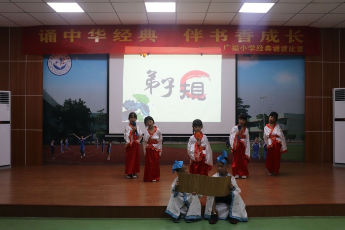 為豐富校園文化生活,營(yíng)造一個(gè)健康、向上的學(xué)習(xí)氛圍,全面提高廣大少年兒童學(xué)習(xí)經(jīng)典,感悟經(jīng)典的能力,也為了培養(yǎng)學(xué)生熱愛(ài)祖國(guó)語(yǔ)言文字的情感,提高學(xué)生的語(yǔ)文素養(yǎng),同時(shí)也為了迎接國(guó)慶中秋,9月30日,廣福小學(xué)舉行了“誦中華經(jīng)典 伴書(shū)香成長(zhǎng)”經(jīng)典誦讀比賽暨迎國(guó)慶中秋活動(dòng)。
