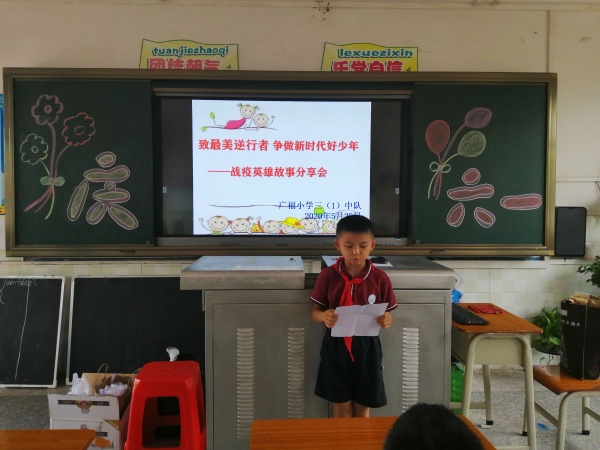 5月29日下午,全校在教室開(kāi)展“致敬最美逆行者 爭(zhēng)做新時(shí)代好隊(duì)員”——戰(zhàn)疫英雄故事分享會(huì),學(xué)生以講故事的形式講述自己在疫情期間看到的、聽(tīng)到的、學(xué)習(xí)到的戰(zhàn)疫英雄,引領(lǐng)學(xué)生樹(shù)立“從小學(xué)先鋒 長(zhǎng)大做先鋒”的人生志向。