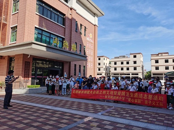 在教師、家長志愿者們的共同努力下,湖洲小學通過多次的創(chuàng)文攻堅志愿活動,對校門口周圍、雅芙花園前等街道進行了清掃,清理多年積存大塊垃圾,積極創(chuàng)造整潔文明的生活環(huán)境,同時也在板芙大橋西至四海家具廠門口路段、墟鎮(zhèn)等范圍開展“隨手撿、隨手拍、隨手鏟、隨手拍”活動,沿途清除街道窄巷內(nèi)的衛(wèi)生黑點,并派發(fā)創(chuàng)文宣傳單張,積極開展創(chuàng)文宣傳。8月26日,志愿者們對湖洲小學校園內(nèi)環(huán)境以及課室等進行了細致的清潔,將愛國衛(wèi)生運動和創(chuàng)文攻堅活動在校園中落實到位,同時也為新學期開學做好了充分的衛(wèi)生準備。