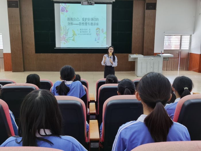 為增強(qiáng)未成年人防范性侵害意識,普及預(yù)防性侵害知識,幫助未成年人預(yù)防和遠(yuǎn)離性侵害,5月19日下午,新聯(lián)小學(xué)開展法治教育進(jìn)校園活動。廣東劉志均律師事務(wù)所的律師楊瑞穎給六年級的學(xué)生進(jìn)行了題為“擁抱自己,愛護(hù)好自己的身體”的預(yù)防性侵專題講座?;顒佑蓪W(xué)校德育處副主任劉桂英主持。
