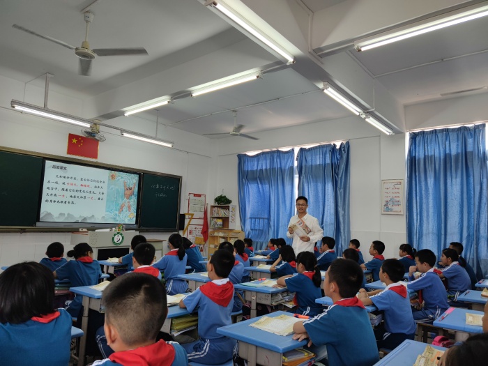 朱土福老師帶領(lǐng)四(1)班學(xué)生品讀中國(guó)神話(huà)故事《盤(pán)古開(kāi)天地》。通過(guò)學(xué)習(xí)盤(pán)古“開(kāi)天辟地”、“頂天立地”、“身化萬(wàn)物”的故事情節(jié),引導(dǎo)學(xué)生充分感受神話(huà)故事的神奇和魅力,領(lǐng)悟到巨人盤(pán)古偉大的開(kāi)創(chuàng)精神和獻(xiàn)身精神。朱老師引導(dǎo)學(xué)生按照事情的起因、經(jīng)過(guò)、結(jié)果把神話(huà)故事講清楚,啟發(fā)學(xué)生發(fā)揮豐富想象,用生動(dòng)的語(yǔ)言描述這個(gè)神奇的故事,激發(fā)了學(xué)生熱愛(ài)祖國(guó)傳統(tǒng)文化的情感。