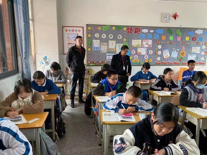 楊督學(xué)在行政會議室聽取了學(xué)校行政關(guān)于新學(xué)期學(xué)校教學(xué)常規(guī)、落實“雙減”及“五項管理”、教師發(fā)展、德育管理等方面工作的匯報,查看了新學(xué)期各部門工作計劃,詳細(xì)詢問了學(xué)校心理健康教育情況。隨后,在教導(dǎo)處主任楊忠華的陪同下,楊督學(xué)通過巡視校園、訪問調(diào)研、觀摩課堂、查看作業(yè)批改情況等,對學(xué)校開學(xué)初工作進行了細(xì)致全面的督導(dǎo)。楊督學(xué)對學(xué)校提前謀劃、部署、落實新學(xué)期開學(xué)各項工作給出了高度評價,對學(xué)校謀劃高質(zhì)量發(fā)展新舉措給予了肯定,認(rèn)為新聯(lián)小學(xué)開學(xué)工作規(guī)劃合理、推進扎實、有序高效。同時在提升教師專業(yè)能力,提高學(xué)生綜合素養(yǎng),提升家庭教育質(zhì)效等方面提出了具有實效的指導(dǎo)和推進建議。
