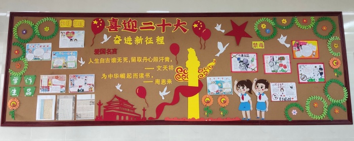 黑板報(bào)是班級(jí)文化的主陣地,是愛國(guó)主義教育的重要載體,發(fā)揮著環(huán)境育人的作用。本次的黑板報(bào)評(píng)比以“喜迎二十大 童心向未來”為主題,各班高度重視,挖掘和選取典型素材,精心設(shè)計(jì),巧妙布局,通過圖文并茂的形式抒發(fā)愛黨、愛國(guó)、愛社會(huì)主義情懷。以新時(shí)代小學(xué)生的風(fēng)采,喜迎二十大,傳播正能量,唱響時(shí)代主旋律,展現(xiàn)青春向黨、奮斗強(qiáng)國(guó)的時(shí)代擔(dān)當(dāng),也為班級(jí)和校園增添了一道靚麗的風(fēng)景線。各班參評(píng)的黑板報(bào)主題鮮明、內(nèi)容充實(shí)、構(gòu)思新穎、富有創(chuàng)意、畫面美觀、書寫規(guī)范。每一個(gè)畫面的設(shè)計(jì)都體現(xiàn)出老師和同學(xué)們的心血,充分展現(xiàn)了師生積極向上的精神文明風(fēng)貌。