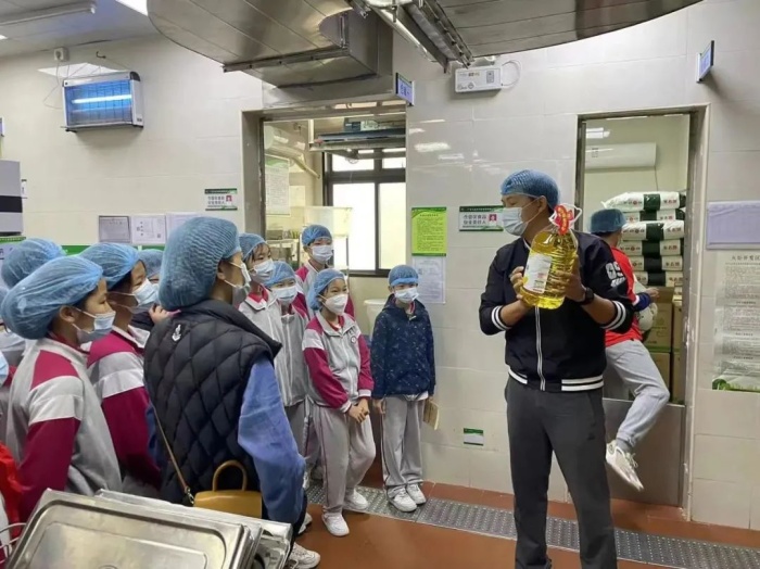 提案答疑環(huán)節(jié)結束后,黃錠君主任帶領各中隊少先隊員代表走訪了食堂,詳細觀察和了解了學校食堂的材料及制餐過程。