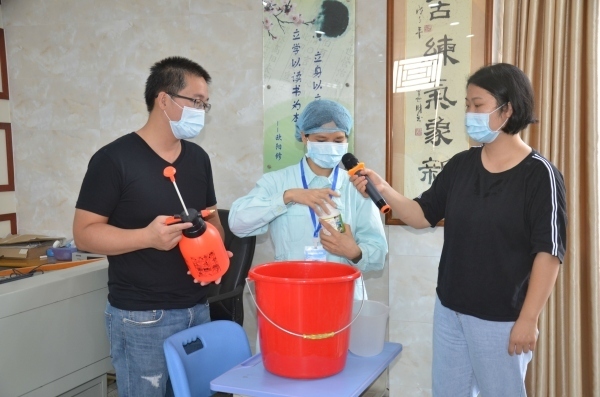 八點半,全體教師集中電教室開展教師防疫培訓(xùn)。首先,羅門光校長以“處理校門口發(fā)現(xiàn)發(fā)燒學生的辦法流程”為切入點,說明了教師要細致認真學習防疫防護知識的重要性。接著,衛(wèi)生副校長李麗文醫(yī)生向班主任詳細介紹了校門口和教室等地方發(fā)現(xiàn)發(fā)燒學生的處理流程和方法,再就老師們提出的疑惑進行講解。然后,大涌鎮(zhèn)社區(qū)衛(wèi)生服務(wù)中心梁桂好護理組長現(xiàn)場為老師們展示了教室和功能室調(diào)配消毒水的方法,消毒粉的分量、水的分量以及調(diào)配的手法,她無一不細致入微地展示和講解,老師們看得清楚,學得明白,心里對每日的消毒工作更有把握了。最后,行政們對18號的學生返校工作做了一次全面的布置,確保每個老師在其崗,行其職。