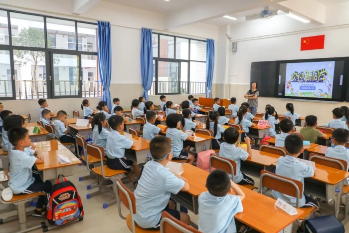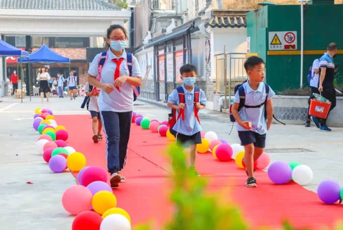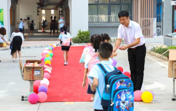 隨后,安堂小學(xué)迎來(lái)了一年級(jí)新生,同學(xué)們以熱烈的掌聲迎接新的朋友們。在今天這個(gè)特殊的日子里,在我們美麗的校園里,又多了一張張稚嫩的笑臉,他們特別地激動(dòng)和興奮,因?yàn)閺慕裉炱穑麄儗⒍冗^(guò)六年愉快的小學(xué)生活,融入到安堂小學(xué)這個(gè)溫馨快樂(lè)的大家庭里,一起成長(zhǎng)!