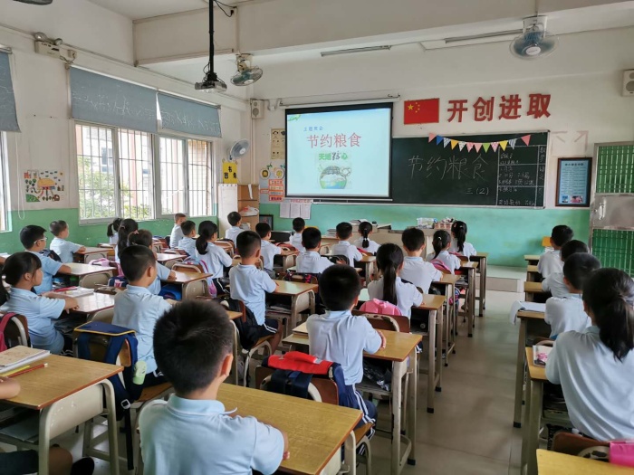 在班會上,班主任從古詩《憫農(nóng)》入手,帶領(lǐng)學(xué)生重溫糧食從播種、生長、收獲到加工的過程,讓學(xué)生認識到糧食的來之不易。中國人用世界7%左右的耕地種植糧食,養(yǎng)育世界22%的人口。讓學(xué)生知道2018年以來,世界上多個國家遭遇嚴(yán)重的糧食危機,只要大家每個人每天節(jié)約一粒米,可以養(yǎng)活3.5萬人,這是多么驚人的數(shù)字!在課堂上,老師還組織同學(xué)們討論節(jié)約糧食的方法,如吃多少盛多少、外出吃飯吃不完要打包、要和身邊的朋友宣傳節(jié)約糧食、光盤是光榮的事等。最后,班主任向全體學(xué)生提出倡議——勤儉節(jié)約是中華民族的傳統(tǒng)美德,雖然現(xiàn)在生活好了,但仍然不能丟掉這種美德。希望全體同學(xué)都能愛惜糧食,節(jié)約糧食。
