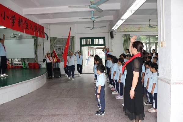 在入隊(duì)儀式上,全體少先隊(duì)員齊唱《中國(guó)少年先鋒隊(duì)隊(duì)歌》,孫林強(qiáng)主任為新加入組織的中隊(duì)授中隊(duì)旗,老隊(duì)員為新隊(duì)員佩戴了紅領(lǐng)巾,并送上了他們的祝福。全體隊(duì)員在大隊(duì)輔導(dǎo)員李國(guó)美老師的帶領(lǐng)下進(jìn)行了宣誓。接著新老隊(duì)員代表分別進(jìn)行了講話,表示一定聽黨話、跟黨走,爭(zhēng)做踐行社會(huì)主義核心價(jià)值觀的小模范,高舉星星火炬,努力成長(zhǎng)為有知識(shí)、有品德、有作為的新時(shí)代好隊(duì)員,為學(xué)校爭(zhēng)光、為中國(guó)少年先鋒隊(duì)爭(zhēng)光。