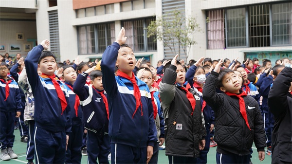 學(xué)生代表王烯同學(xué)發(fā)表了新學(xué)期感言。她欣喜地回顧了2022年北京冬奧會開幕、女足亞洲杯奪冠的精彩瞬間,倡議同學(xué)們行動起來,以全新的精神面貌投入到新學(xué)期,在學(xué)習(xí)中帶上理想和目標(biāo)、自信和堅強(qiáng),在生活中守規(guī)則、重素質(zhì),成為一名全面發(fā)展的小學(xué)生。